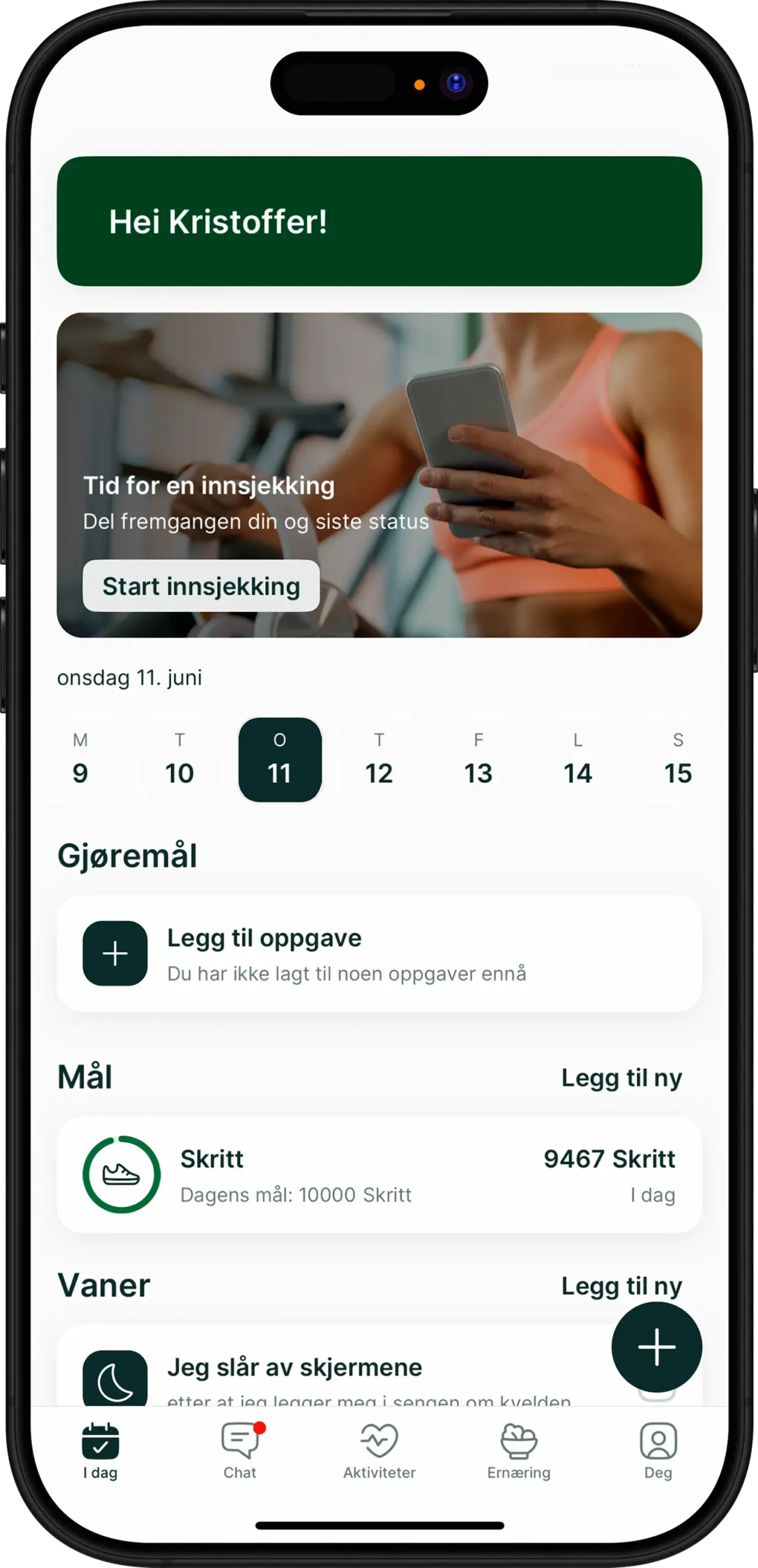 Med styrkeprogram fra Kristoffer har jeg endelig kommet i gang med egentrening og programmet er skikkelig motiverende. Jeg både kjenner og ser fremgang.